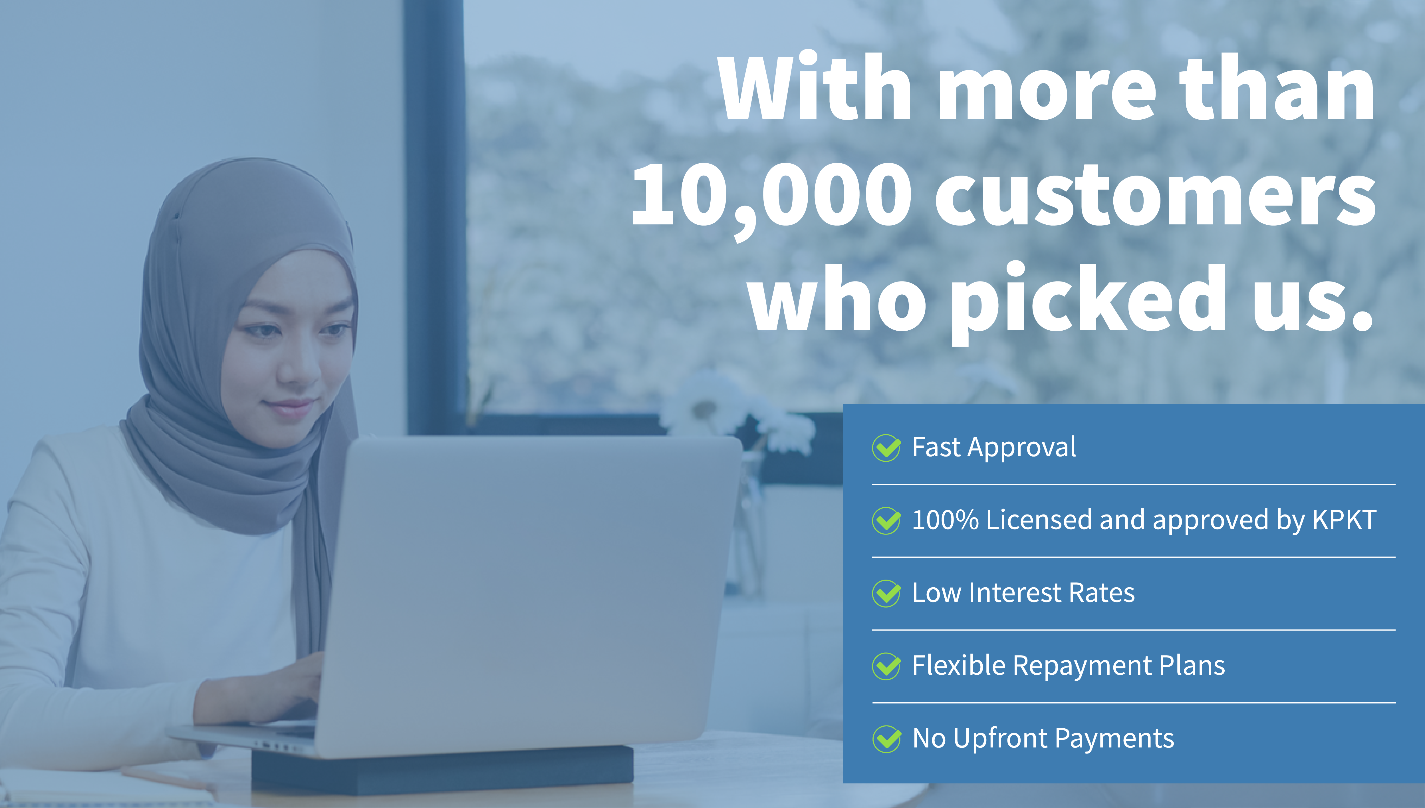 We are a regulated and licensed money lender by KPKT. All our offerings are regulated by law under the Money Lending Act 1951